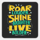 Roar Louder Live Bolder, Motivational Green Yellow Square Sticker