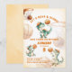 Get ready to roar and score! This adorable watercolor invitation features a playful dinosaur dribbling a basketball, the perfect mix of sporty fun and dino charm for your little one’s big day.