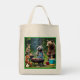 The printing came out very well, better than I had anticipated. The natural color fabric is sturdy with strong seams and comfortable handles. This tote fits easily over my shoulder. As it is filled, the bottom flattens out--very cool! I would buy this product again. This grocery tote holds a lot of groceries! The image quality was very good. The colors were a little darker than I had expected. The darkness may have been due to printing on a natural color fabric rather than on white. The cat design is attractively centered on the tote. The spirit of the design is very lively, just as it appears on the Zazzle website.
