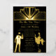 Roaring 20s art deco flapper girl and gangster party gold and black invitations