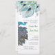 Grey Aqua Blue Turquoise Teal Green Gold Yellow Roaring 20s Peacock Feathers Wedding Invitations 3 Feathers in Aqua with Green Embellishments and Musical Notes adding to the romantic feel. Elegant Gatsby Wedding Theme.