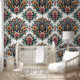 Bring a bold yet graceful touch to your interiors with this captivating wallpaper, featuring a powerful watercolor lion detailed with mandala patterns. Encircled by a lush array of roses, lilies, and swirling vines, the symmetrical design radiates a sense of tranquillity and strength. Soft watercolor splashes blend the floral elements seamlessly, making this wallpaper a perfect choice for artistic spaces, bohemian retreats, or elegant home decor.