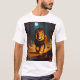A powerful lion stands proudly, wearing a stylish T-shirt that contrasts with its majestic mane. The T-shirt is snugly fit, featuring a bold design that complements the lion's regal aura. The lion's golden fur and thick mane frame the shirt, highlighting its fierce yet laid-back demeanour. Its eyes are sharp and focused, exuding confidence, while the casual attire adds a playful twist to its formidable presence. The scene captures the essence of strength combined with a touch of modern, cool fashion.