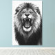 Roaring Lion Black White Powerful Wildlife Art Canvas Print