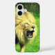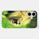 This phone case has a roaring lion pictured on it.