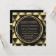 Distinctive black and gold wedding invitations are reminiscent of Roaring Twenties or Gatsby era flashy designs.