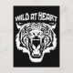 Wild At heart text quote and roaring white tiger graphic design in the style of stencil art.