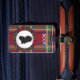 A totally modern Robert Burns in silhouette features the famous bard in profile with lace shirt and ponytail set on an artistically rendered tartan background with the famous line from Burns poem, Scotch Drink "O whiskey soul o’ plays and pranks!". This fully customisable luggage tag is perfect for any travelling Burns enthusiast.
