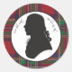 A totally modern Robert Burns in silhouette features the famous bard in profile with lace shirt and ponytail set on a an artistically rendered tartan background. Includes the famous line from his poem, Selkirk Grace "We hae meat and we can eat". Perfect for a chic Burns party, a gift or a keepsake for trendy Burns enthusiasts.