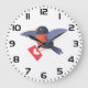 Robin Bird Flying with Red Heart Love Letter Large Clock