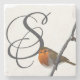Robin Bird on Winter Branch Monogram Stone Coaster