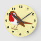 This robin design wall clock is a timekeeping device designed to hang on a wall, serving as both a functional tool and a decorative focal point for a room. Made from acrylic and features a pre-installed backside hanging slot for easy hanging and a non-ticking design. You can customise this wall clock with any text of your choice. Should you require any help with customising then contact us through the link on this page. Robin bird design wall clock