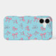 Pink bows with black outlines on a robin egg blue background make up this cute phone case. The design features different types of bows in a trendy pattern.