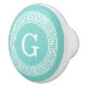 Robin Egg Wht Greek Key Rnd Frame Initial Monogram Ceramic Knob