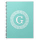 Robin Egg Wht Greek Key Rnd Frame Initial Monogram Notebook