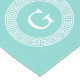 Robin Egg Wht Greek Key Rnd Frame Initial Monogram Short Table Runner