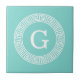 Robin Egg Wht Greek Key Rnd Frame Initial Monogram Tile