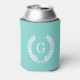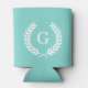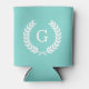 Robin Egg Wht Wheat Laurel Wreath Initial Monogram Can Cooler