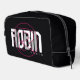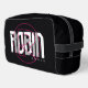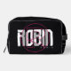 This graphic offers a contemporary reinterpretation of the Robin emblem, blending classic elements with modern design sensibilities. The logo centres around a bold, geometric depiction of the word "ROBIN," set in stark white against a deep black background, encapsulated within a striking pink circle that adds a dynamic visual contrast. The circle not only frames the text but also breaks through it, suggesting Robin's emergence from the shadow of Batman to establish his own identity. The use of pink adds an unexpected twist, lending a fresh and modern vibe while still paying homage to the traditional red associated with Robin. This design captures the essence of Robin's evolution as a character, blending his heroic legacy with a sleek, urban aesthetic suitable for a new generation of fans.