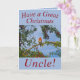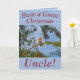 Christmas card for Uncle featuring a cute European robin perched in a hawthorn tree with red berries. All text can easily be customized as you wish.
