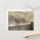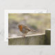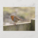 A European Robin (Erithacus rubecula) standing on a wooden fence at The Rising Sun Country Park, Newcastle upon Tyne.