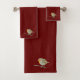 Dark red towel set with robin design