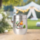 A beautiful, colourful bird image on the front and back of this stainless steel wine tumbler.