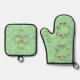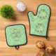 Robin, wreaths, and snowflakes green oven mitt & pot holder set