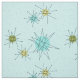 This Robin’s Egg Blue Iconic Atomic Starbursts Fabric (large print) pattern features iconic atomic starbursts. That’s right! The old school, robin’s egg blue coloured background with gold speckles is the perfect backdrop for the vibrant turquoise, soothing celery, and kitschy pear green coloured circles. The spots of colour are sporadically placed in various sizes with overlaying black V shaped lines to form the mod sputnik starbursts. Styled after a 1950’s dish pattern, this retro inspired design has everything you need to be truly mid century modern.