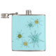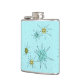 This Robin’s Egg Blue Iconic Atomic Starbursts Vinyl Wrapped Flask pattern features iconic atomic starbursts. That’s right! The old school, robin’s egg blue coloured background with gold speckles is the perfect backdrop for the vibrant turquoise, soothing celery, and kitschy pear green coloured circles. The spots of colour are sporadically placed in various sizes with overlaying black V shaped lines to form the mod sputnik starbursts. Styled after a 1950’s dish pattern, this retro inspired design has everything you need to be truly mid century modern.