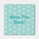 Crisp white polka dots on that perfect shade of turquoise; not quite blue, not quite green, but very much the classic robins egg colour of a certain jeweller! What a gorgeous, classic design this is. We offer it on a variety of products so you can match your announcements and cards to the colours of your wedding.