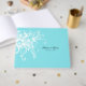 Pretty wedding guest book done in robin's egg blue, with modern white floral designs, accenting one side. Personalise the black text for your special day.