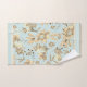 Robins Egg Blue with Brown Shades of Florals Bath Towel Set. A beautiful design in soft shaded blue with trim at top/bottom of towels, wash cloth. Great for home decor, gifting, showers, birthdays and more.