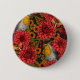 Robins in the autumn garden, red dahlias on black 6 cm round badge