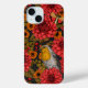 Robins in the autumn garden, red dahlias on black Case-Mate iPhone case
