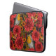 Robins in the autumn garden, red dahlias on black laptop sleeve