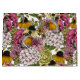 Hand-drawn pattern with various flowers- hydrangea, anemone, peony, dahlia and robin birds