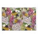 Hand-drawn pattern with various flowers- hydrangea, anemone, peony, dahlia and robin birds