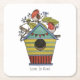 Robins With Blueberries And Birdhouse Square Paper Coaster