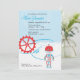 A darling customisable baby shower invitation featuring a blue and red robot design. Matching thank you card and favour sticker.