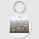 A robot dressed as a construction worker and working on a construction site. This design looks really effective on this Keychain