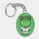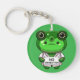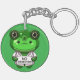 A keychain with a design featuring a vibrant green robot frog, The frog's chest has a bord with the words "NO DISSECTION" glowing in bold, neon green letters. The keychain is small and compact, perfect for everyday use.