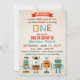 Fun, nerdy vintage robots with retro stripe background back design birthday invitation card.