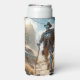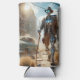 A robot dressed in human clothes walks confidently down a deserted, post-apocalyptic city street, surrounded by dilapidated buildings and deserted cars. The atmosphere combines a sense of futuristic technology with a vintage aesthetic.