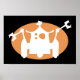 Retro Robot in Orange Disc. Colourful, Bold graphic for boys & girls, geeks & gals, gramps & grand kids! Fantastic prints look great in frames for Birthday Parties and all other Holidays!!