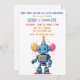 robot theme with balloons watercolor invitation