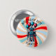 Personalised boy's happy birthday boy button with a robot theme. Colours are blue, red and black. A cartoon robot holding up red and blue balloons. Cute for any little boy who loves robots!