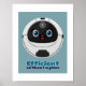 Poster with a cute robot vacuum cleaner with a face and the kawaii text "Efficient without a plan". Funny home wall art decoration for all who love their small household helpers.
