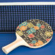 Robots on brown ping pong paddle