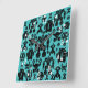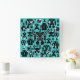 Robots Rule Fun Robot Silhouettes Pattern Blue Square Wall Clock